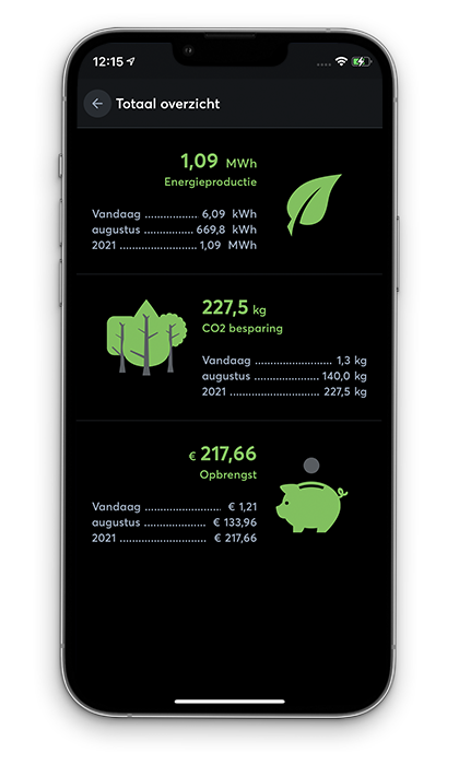 Perfect voor eigenaars van een fotovoltaïsch systeem. In één oogopslag kunt u zien hoeveel energie u verbruikt, hoeveel het PV-systeem op het dak produceert en hoeveel u afneemt van of levert aan het net. Statistieken inbegrepen!