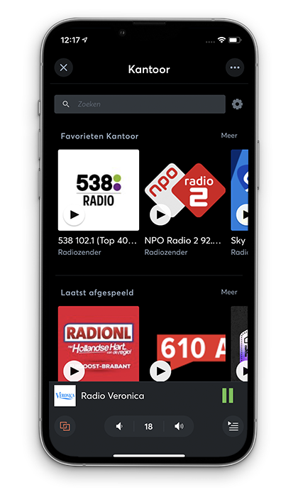 In de gratis Loxone App hebt u altijd alles rond het thema muziek in beeld dankzij het overzichtelijke en functionele design.