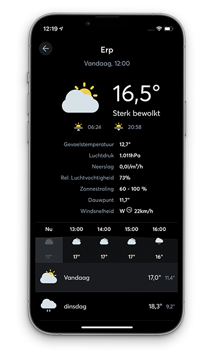 In combinatie met de Loxone Weerservice en het Weerstation krijgt u exacte weergegevens en voorspellingen voor uw locatie in de Loxone App.